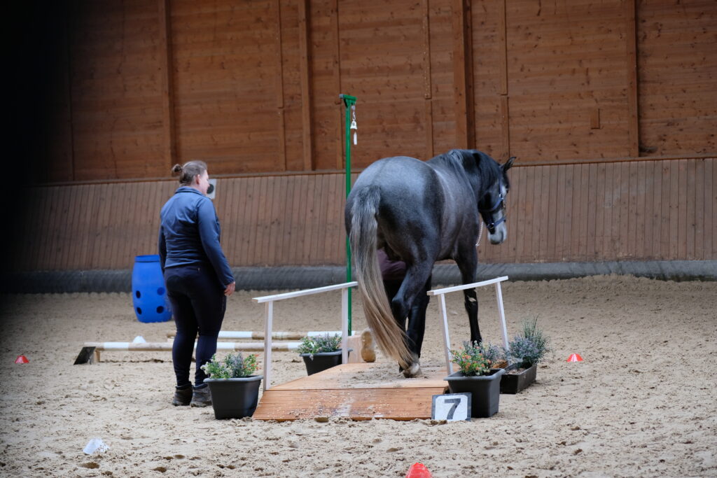 Die teilnehmenden Paare waren bunt aufgestellt – von der jüngsten Teilnehmerin im Alter von 7 Jahren, die sich für die Führzügelklasse vorbereiten möchte, einem Jungpferd der erst mal alles vom Boden aus kennen lernen durfte, Dressurreitern die das erste Mal „Worken“, Paare die einfach just-for-fun teilnahmen, bis hin zu schon etwas erfahreneren Teilnehmenden die sich fürs Turnier vorbereiten möchten.